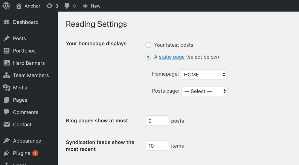 Step 1 – Navigate to Settings > Reading.
