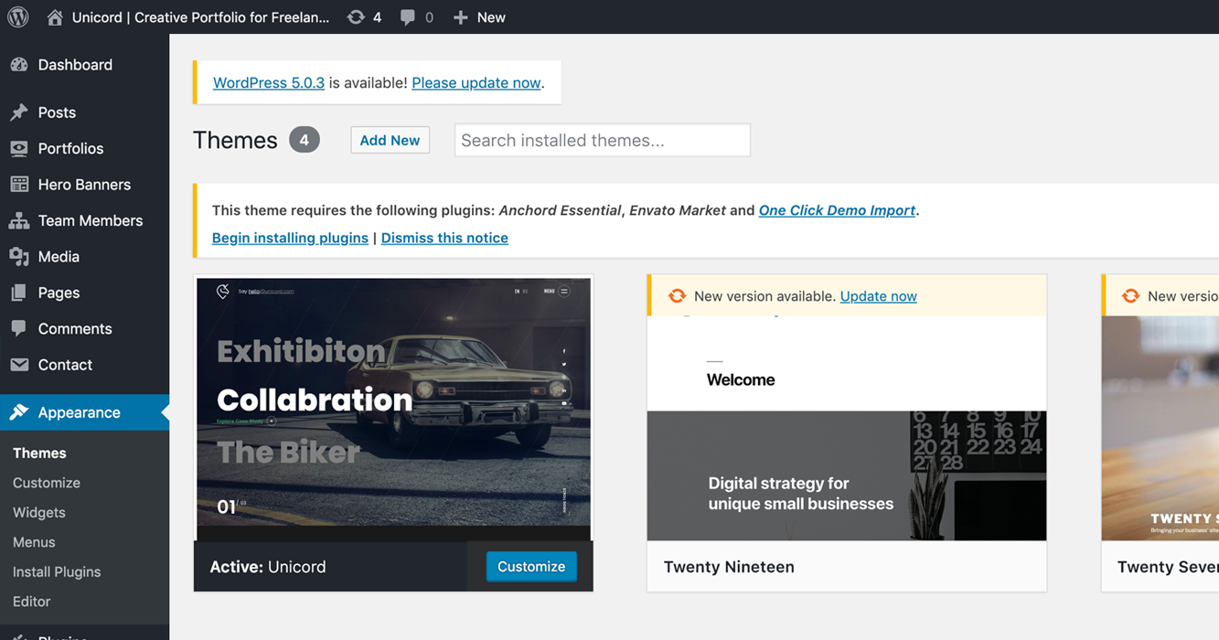 - Unicord.zip – this is the parent wordpress theme, install this via WordPress. If you install it via FTP then unzip it first and use the extracted folder.